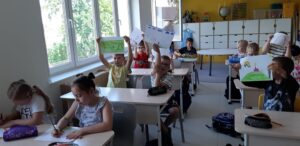 Uczniowie klas 1–3 uczestniczyli w warsztatach pt. „Przemoc i agresja – Kraina Szczęścia i Złości”, podczas których w przystępny i angażujący sposób uczyli się rozpoznawania i nazywania emocji, a także radzenia sobie z trudnymi sytuacjami w relacjach z rówieśnikami. Dzięki interaktywnym formom pracy dzieci mogły zrozumieć, że złość to naturalna emocja, ale ważne jest, jak ją wyrażamy i jak reagujemy na przemoc.