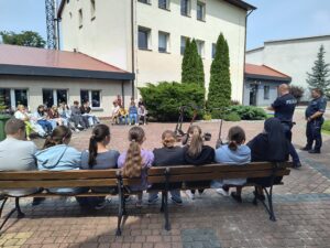 Funkcjonariusze przypomnieli najważniejsze przepisy ruchu drogowego, które obowiązują użytkowników hulajnóg elektrycznych, a także rozmawiali z uczniami o tym, jak unikać zagrożeń w czasie letniego wypoczynku.