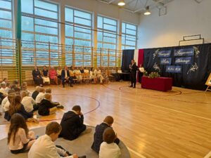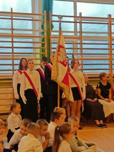 Podczas apelu Dyrektor Szkoły wraz z Wójtem Gminy Adamów powitali uczniów, rodziców i nauczycieli, składając życzenia wytrwałości, radości oraz wielu sukcesów w nauce.