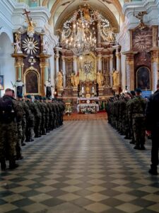 Drugiego dnia – 5 października – delegacja naszej szkoły, wraz ze sztandarem, uczestniczyła we Mszy Świętej w Sanktuarium Matki Bożej Patronki Żołnierzy Września w Woli Gułowskiej. Po nabożeństwie odbyła się uroczysta defilada na Cmentarz Parafialny w Turzystwie, gdzie delegacja złożyła kwiaty i zapaliła znicze na grobach poległych żołnierzy, oddając im hołd.