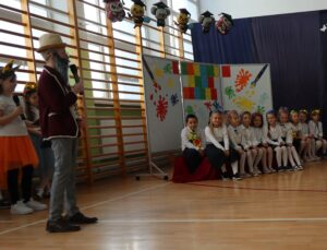 5 listopada odbyła się uroczystość Pasowania na ucznia pierwszoklasistów z naszej szkoły. Uczniowie zaprezentowali inscenizację „W Akademii Pana Kleksa” i starali się udowodnić, że zasługują na przyjęcie do tej niezwykłej szkoły. Pod czujnym okiem Pana Kleksa wykonywali różne zadania, wykazując się wiedzą i sprawnością. Występ był pełen muzyki, tańca i recytacji, a mali artyści z ogromnym zaangażowaniem wcielili się w swoje role. Dzięki radości i odrobinie magii udało im się zdobyć uznanie samego Pana Kleksa i zostać przyjętymi do grona uczniów Akademii.