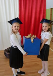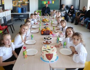 Nie zabrakło również chwili wzruszenia – dzieci złożyły serdeczne podziękowania rodzicom za opiekę, troskę i wsparcie, jakie otrzymują każdego dnia. Po części oficjalnej na dzieci czekał słodki poczęstunek w klasie, który był doskonałą okazją do wspólnego świętowania. To był dzień pełen emocji, uśmiechu i dumy – dzień, który na długo pozostanie w pamięci naszych pierwszoklasistów oraz ich bliskich.