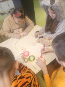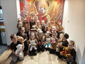 Z okazji Dnia Pluszowego Misia w przedszkolu zostały zorganizowane zajęcia, łączące naukę języka angielskiego z zajęciami rytmiczno-tanecznymi w grupie Motylki. Uczniowie klasy IV włączyli się we wspólne aktywności, prezentując młodszym dzieciom proste zabawy ruchowe oraz piosenki w języku angielskim nawiązujące do tematyki misiów.