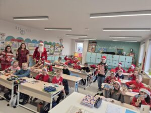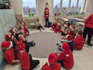 5 grudnia w klasie drugiej panowała wyjątkowa, świąteczna atmosfera. Tego dnia obchodziliśmy Mikołajki – jedno z najbardziej wyczekiwanych wydarzeń w roku. Uczniowie spędzili w szkole nieco więcej czasu niż zwykle, jednak nikt nie narzekał, ponieważ czekało na nich wiele atrakcji oraz wspólnej zabawy.