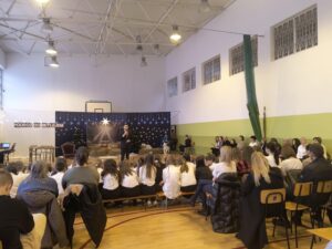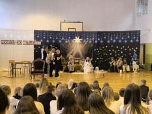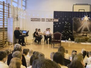 W przedświątecznej atmosferze w naszej szkole odbyły się jasełka bożonarodzeniowe pt. „Podróż do Betlejem”, przygotowane przez uczniów klas VI i V, które zgromadziły całą społeczność szkolną oraz zaproszonych gości. Spotkanie rozpoczęło się od świątecznych życzeń pana Dyrektora, który wszystkim zgromadzonym życzył zdrowia, spokoju oraz wielu radosnych chwil w gronie rodzinnym. Wydarzenie poprowadzili uczniowie klasy VIII.
