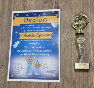 Miło nam poinformować, że w dniu 11.01.2026r. reprezentowaliśmy naszą szkołę w XIV Powiatowym Konkursie Kolęd i Pastorałek „ Anielskie Śpiewanie” 2026 w Domu Kultury w Woli Gułowskiej. Zajęliśmy 2 miejsce w kategorii klas IV-VI-Zespoły.