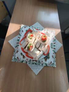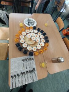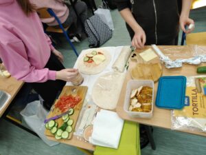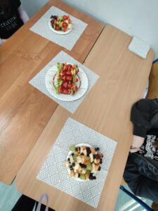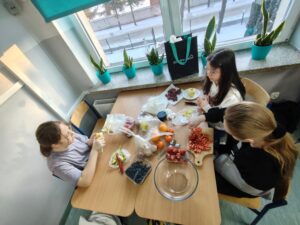 Podsumowaniem realizowanych działań było wspólne przygotowanie drugiego śniadania. Uczniowie z dużym zaangażowaniem przygotowywali zdrowe przekąski oraz uczestniczyli w degustacji owoców i warzyw w różnych formach, m.in. wrapów, sałatek owocowych, szaszłyków owocowych oraz własnoręcznie wykonanych deserów. Zajęcia miały charakter praktyczny i spotkały się z dużym zainteresowaniem uczniów, skutecznie promując zdrowe nawyki żywieniowe.