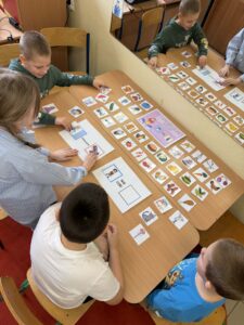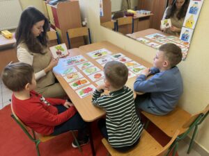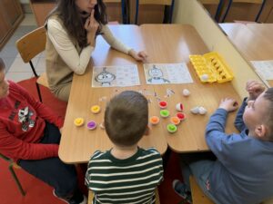 Dzieci z dużym zaangażowaniem brały udział w przygotowanych aktywnościach. Ćwiczyły prawidłową wymowę trudnych głosek, wykonywały ćwiczenia języka i warg, a także brały udział w zabawach rozwijających umiejętność uważnego słuchania.