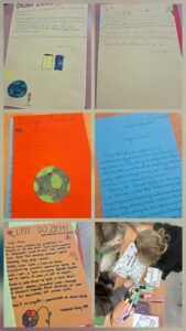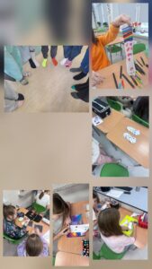 Nie zabrakło także innych aktywności , uczniowie grali w statki oraz rozwiązywali zadania matematyczne i quizy, rozwijając swoją wiedzę również z innych przedmiotów. Następnie przyszedł czas na refleksję – uczniowie pisali listy do Ziemi, w których składali obietnice dotyczące dbania o środowisko i troski o naszą planetę, a także dziękowali Ziemi za jej dary. Wiosenna pogoda zachęciła wszystkich do wyjścia na spacer i poszukiwania pierwszych oznak wiosny. Po powrocie uczniowie integrowali się, grając w swoje ulubione gry planszowe, które tego dnia przynieśli do szkoły.