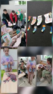 Pierwszy dzień wiosny połączyliśmy także z ważnymi wydarzeniami: Dniem Matematyki, Świętem liczby Pi, Dniem Ekologii oraz Światowym Dniem Zespołu Downa. Wszyscy uczniowie klas 1–8 rozpoczęli dzień od obejrzenia filmu i bajki przybliżających życie osób z zespołem Downa – ich codzienność, wyzwania i radości. Następnie uczniowie kolorowali skarpetki, okazując wsparcie i zrozumienie.