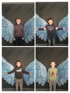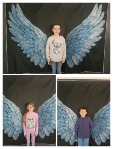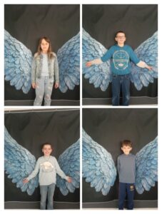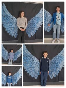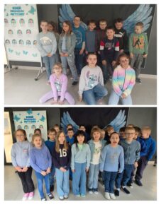 Obok stołówki przygotowano wyjątkową atrakcję – wielkie, niebieskie skrzydła stanowiące ściankę do zdjęć. Uczniowie chętnie robili sobie przy nich fotografie, tworząc piękną pamiątkę z tego dnia oraz symbolicznie pokazując, że każdy z nas jest wyjątkowy.