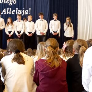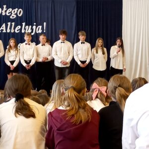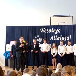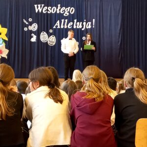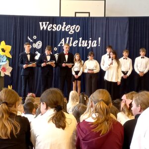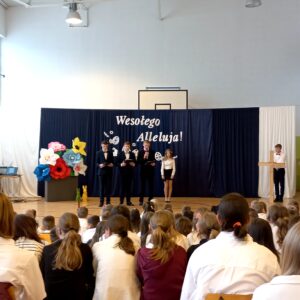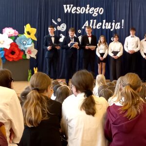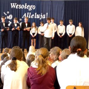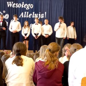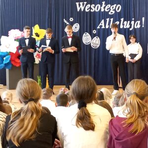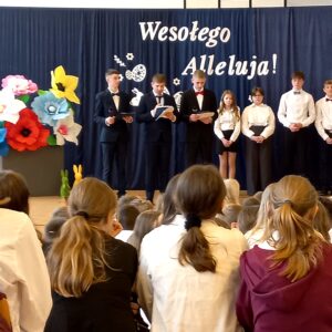 Część artystyczna przybliżyła słuchaczom zdarzenia związane z męką i zmartwychwstaniem Chrystusa oraz tradycje wielkanocne. Występ zakończył się słowami: „WESOŁYCH ŚWIĄT!”
