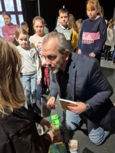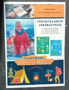 Podczas spotkania autor serii książek dla dzieci i młodzieży o tematyce survivalowej, w bardzo interesujący sposób przedstawił cały proces powstania książki od A do Z, czyli od pomysłu jej napisania aż po dystrybucję i zakup książki przez samego czytelnika, który jest najważniejszą osobą dla pisarza.