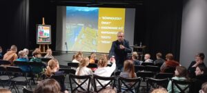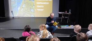 Uczniowie dowiedzieli się na czym polega praca pisarza, korektora, ilustratora, recenzenta i wydawcy. Autor zdradził, skąd czerpie pomysły na swoich bohaterów, których opisuje w swoich kolejnych książkach. Jedną z głównych bohaterek jego utworów jest Zuza i to o niej powstały takie pozycje jak: ,,Księga samodzielności, czyli przygody Zuzy na bezludnej wyspie”, ,,Księga samodzielności, czyli Zuza w tarapatach”, ,,Księga samodzielności, czyli Zuza w krainie kangurów”, ,,Księga samodzielności, czyli Zuza kontra dzika Alaska”, ,,Survival z Zuzą, czyli przetrwaj w każdych warunkach”. Opowiadają one o przygodach nastolatki i uczą, jak poradzić sobie w trudnych warunkach i różnych sytuacjach życiowych.